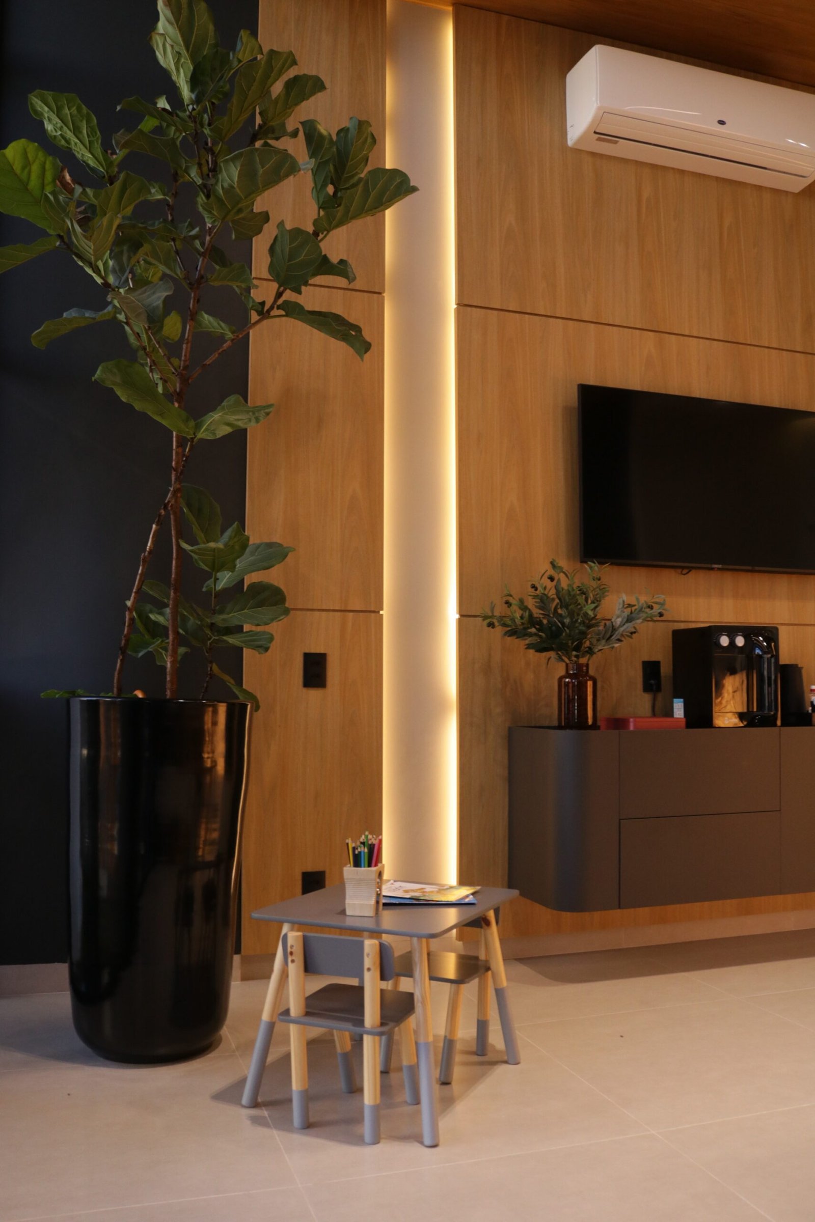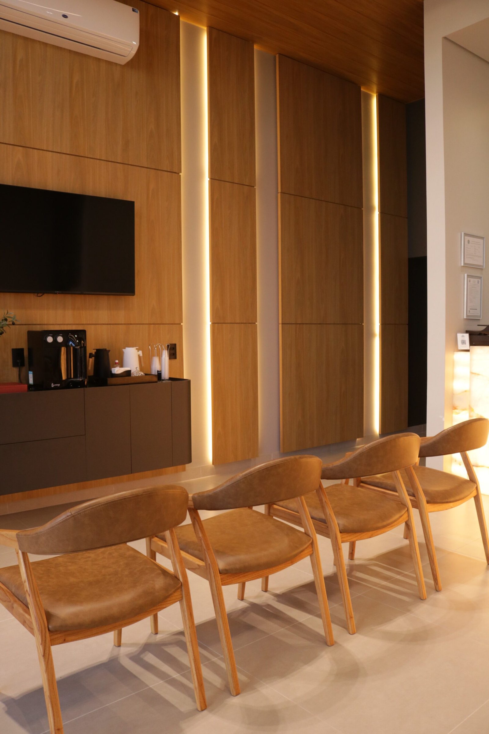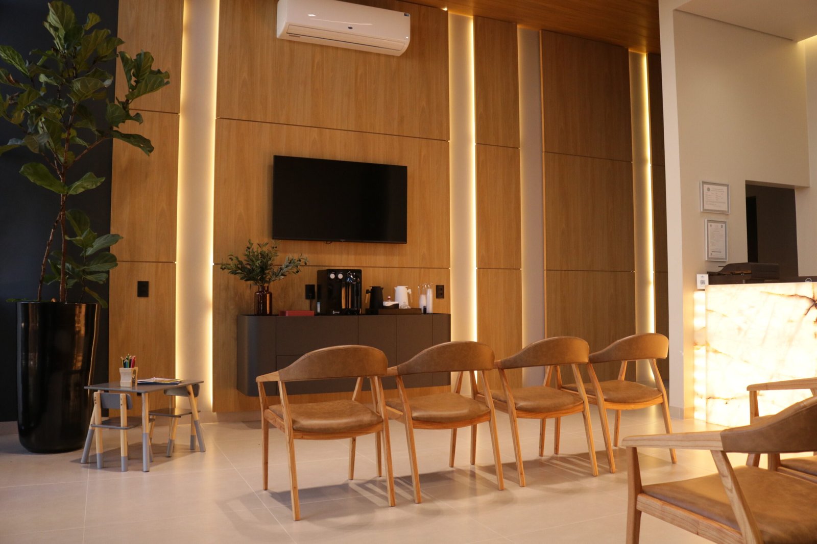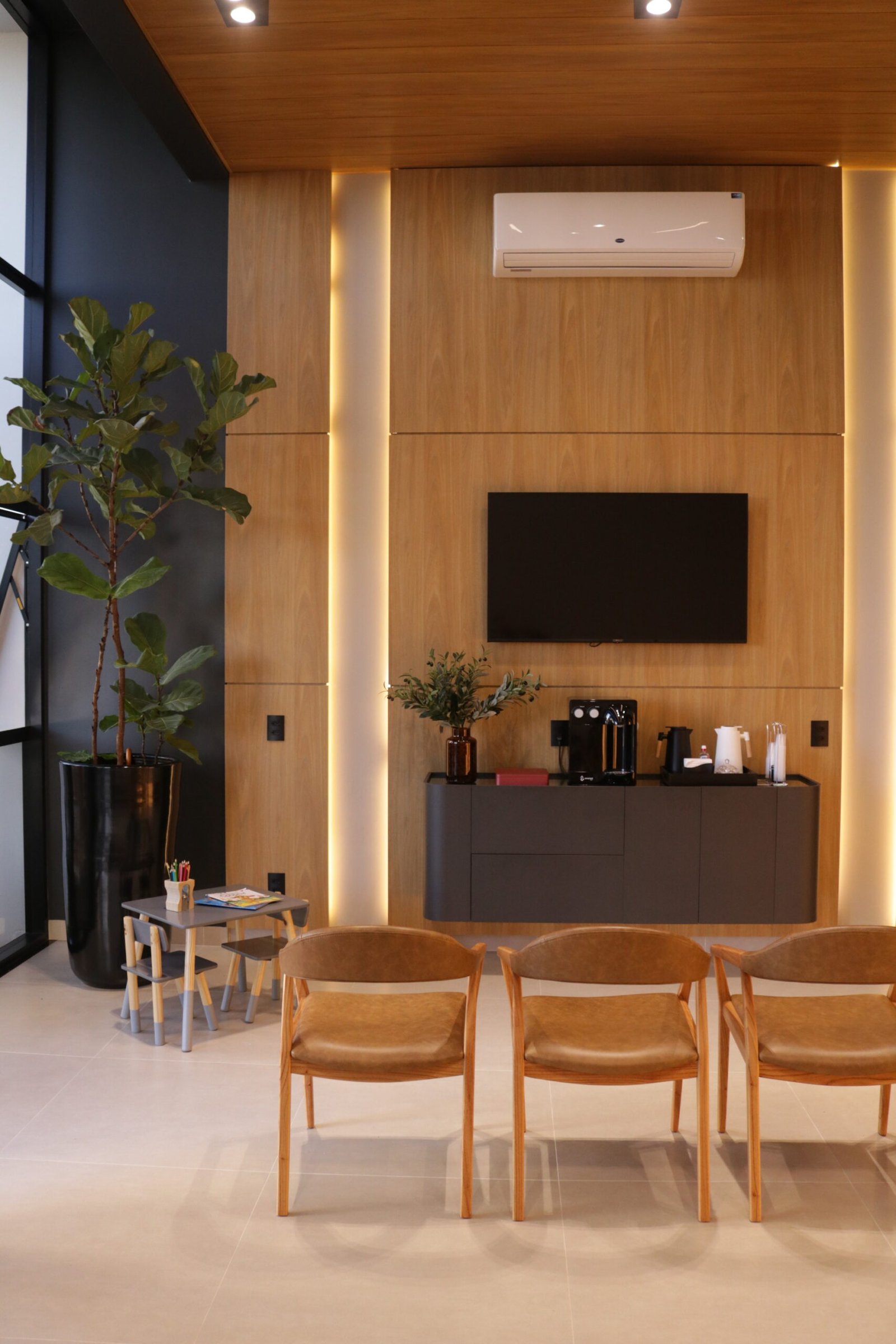 Sabemos que a recepção é a vitrine da clínica e o primeiro ponto de contato para transmitir a identidade e os valores do espaço. Por isso, cada detalhe foi pensado para criar uma experiência marcante e acolhedora.